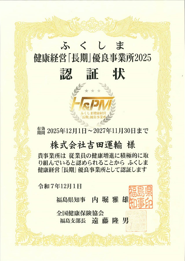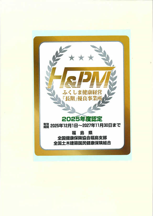 この度弊社は、ふくしま健康経営「長期」優良事業所として認定されました。